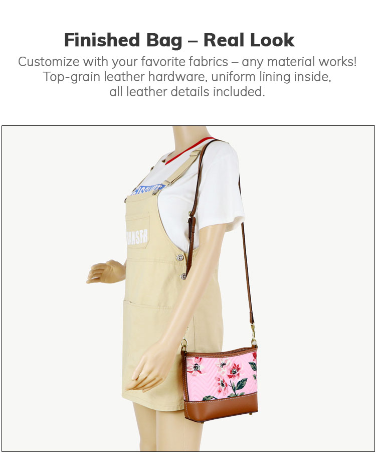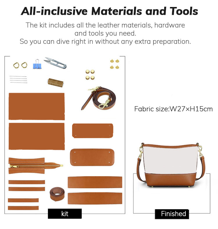 All kits have full-grain or top grain leather exterior and polyurethane (PU) interior.Every DIY bag kit has shoulder straps.
